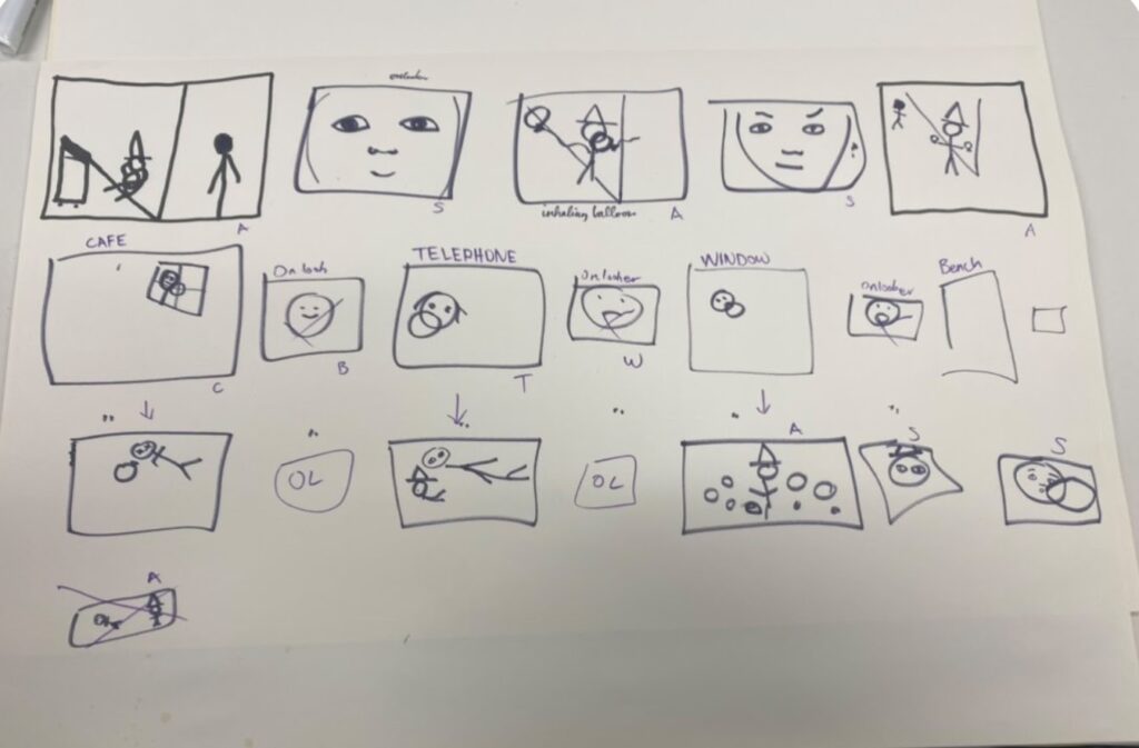 The group project gave us a balloon and a requirement to film both indoor and outdoor. We started by making a brainstorm of what the balloon could become most of them having supernatural connotations. We landed on the idea of balloons coming out of people like a burp. We reinterpreted this concept a few times before landing on a storyline. The main character (Max) would be a shaman-like character who discovers a balloon at the start getting consumed by the power of this balloon eventually popping it to absorb it. A witness (me) observes this occurring and follows the shaman finding people all over the place exhaling balloons and becoming lifeless before the shaman would come and steal them away. The storyline climaxes when the witness start exhaling their own balloon and the shaman comes to steal it. The film ends with the shaman skipping away with all the balloons. Our group work very collaboratively bouncing ideas of each other and creating roles for everyone as well giving everyone a chance to be in the film. Meg was the director, Tong Yao and Tien Xien did the filming, Max and I were acting and Lilu did lighting and soundtrack. We did the same thing in postproduction I did the editing then passed it to Tong Yao to do the colouring. She then passed it on to Lilu to do the sound. This video was fairly successful considering the short timeframe and the new group. The biggest issue with the video is the rough transitions as the subject moved in between the shots.