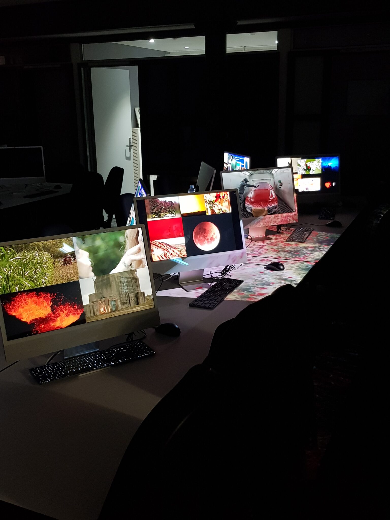 For this group project we did an exploration of colour on multiple displays. Lilu, Tong Yao and I got the colour red. We started by brainstorming anything and everything red. From this we found a theme of things that turn red. We made categories of things that turn red- place, body, nature and emotions. Each of us took charge of a category and a display. Finding footage of these proved to be difficult as did placing the different sized videos into a grid. We also ran out of time to finish the fourth display, so we used a video of a guy painting his car red which turned out to be my favourite part. The projection overtop was meant to be flowers blooming red but due to the time limit we could only find a field of red flowers. Though we did not stick to the categories a progression can be seen through the screens as human involvement is increased.